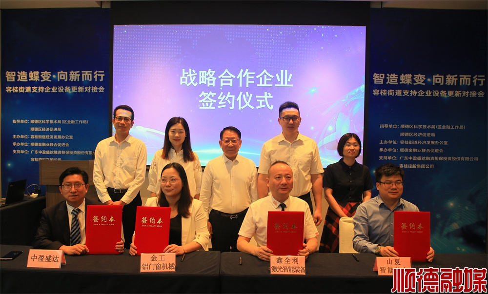 借力“金融+本土服務(wù)商”,容桂支持地方金融上市公司中盈盛達(dá)與山夏智能裝備、金工鋁門窗機(jī)械實(shí)業(yè)、鑫全利激光智能裝備等企業(yè)達(dá)成戰(zhàn)略合作,助力裝備制造業(yè)開拓市場。