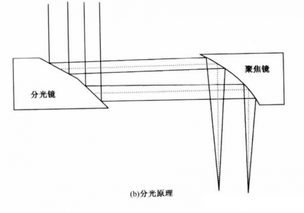 雙光束的獲取可以將兩個(gè)不同的激光束進(jìn)行組合得到,也可以將一束激光采用光學(xué)分光系統(tǒng),分成兩束激光進(jìn)行焊接。要將一束光分為兩束不同功率、相互平行的激光,可以使用分光鏡或一些特殊的光學(xué)系統(tǒng)。圖為采用聚焦鏡為分光鏡的兩種分光原理示意圖。