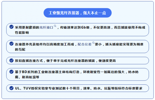 光纖連接器的特點你知道幾點?高顏值BD系列光纖連接器性能解析