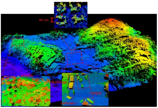 該研究團(tuán)隊成員,來自于中國科學(xué)技術(shù)大學(xué)合肥微尺度物質(zhì)科學(xué)國家研究中心的徐飛虎教授說:“在資源有限的無人機(jī)或衛(wèi)星上使用單光子激光雷達(dá)技術(shù),需要縮小整個系統(tǒng)的體積并降低能耗。我們能夠?qū)⒆钚碌募夹g(shù)發(fā)展融入到系統(tǒng)中,與其他最先進(jìn)的機(jī)載激光雷達(dá)系統(tǒng)相比,該系統(tǒng)采用了最低的激光功率和最小的光學(xué)孔徑,同時在探測距離和成像分辨率方面仍然保持良好的性能。”