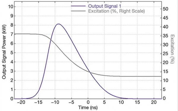 放大器增益與光纖中存儲(chǔ)的大量激發(fā)能量有關(guān)。這可用于脈沖放大。事實(shí)上,通常只需一個(gè)脈沖就能提取其中的大部分能量。這發(fā)生在脈沖能量高于給定飽和能量的情況下,有時(shí)甚至高達(dá)數(shù)十毫焦。在脈沖放大過(guò)程中,增益會(huì)急劇下降,從而扭曲時(shí)間脈沖的形狀。