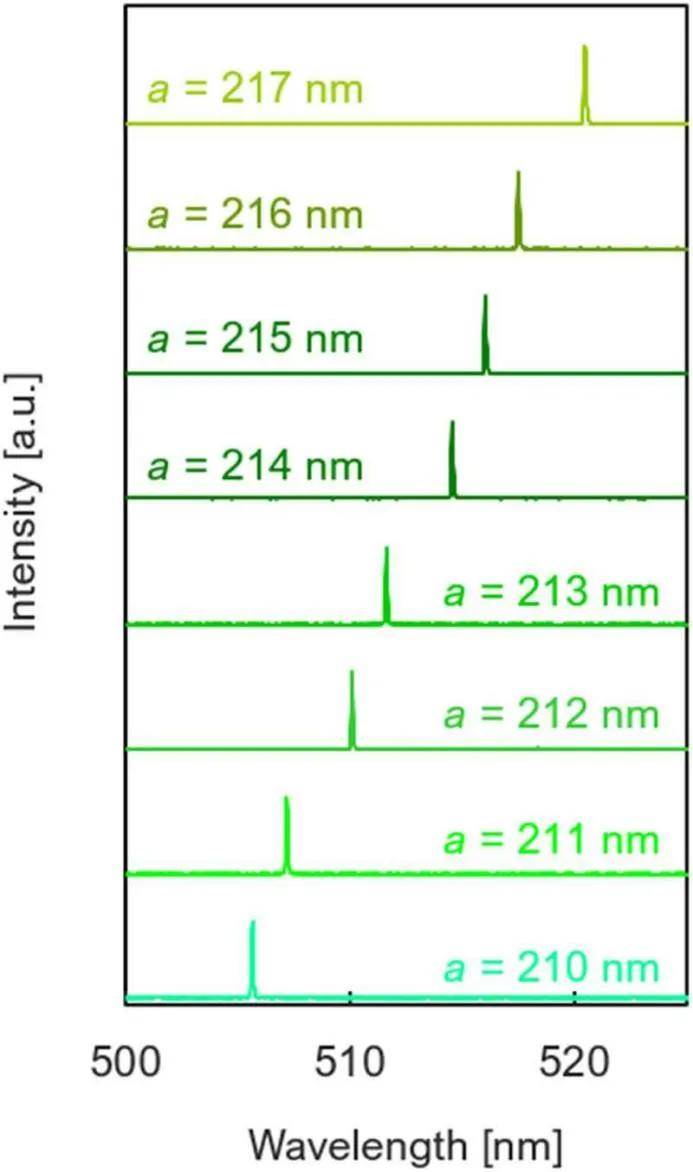 圖2:具有不同光子晶體晶格常數(shù)的器件的激光光譜。