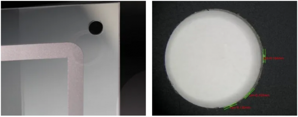 (圖左:打孔效果圖,圖右:邊緣器損傷)