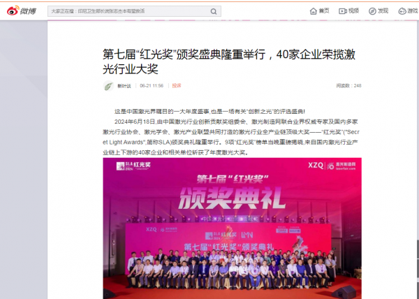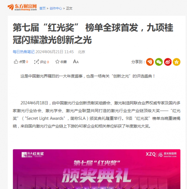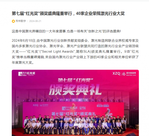 值得一提的是,此次報道活動,各大媒體率先對頒獎典禮進行了報道,圖文并茂地呈現了頒獎典禮的全貌。有媒體稱,“紅光獎”為行業(yè)樹立了標桿,激勵更多的企業(yè)和科研團隊投身于技術創(chuàng)新與突破,推動激光技術邁向新的高度。作為激光行業(yè)的一項重要的評選活動,“紅光獎”不僅為行業(yè)搭建一個展示和交流的平臺,也為激光產業(yè)的永續(xù)發(fā)展注入了新的活力,持續(xù)推動激光技術的創(chuàng)新進步和產業(yè)的升級。