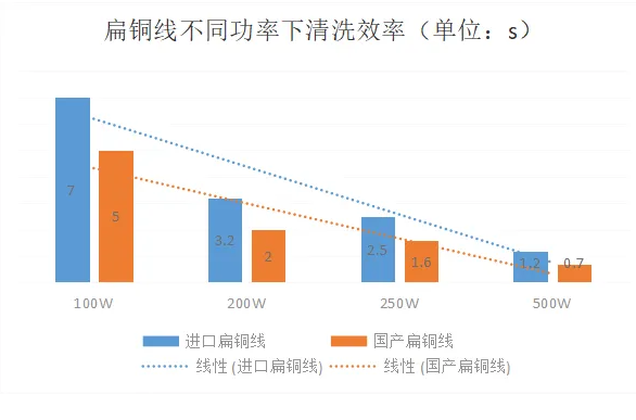 2、不同功率激光器清洗扁銅線,旗幟系列P500MX效率最高,僅1s內(nèi)