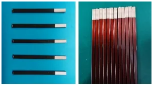 扁銅線從來(lái)源上可分為進(jìn)口和國(guó)產(chǎn)兩種,本次實(shí)驗(yàn)我們采用了進(jìn)口和國(guó)產(chǎn)的相同材料的扁銅線,兩者主要差別為表面漆層不同,其中國(guó)產(chǎn)扁銅線厚度為0.08mm,進(jìn)口扁銅線為0.13mm。我們同時(shí)采用4種不同功率的脈沖激光器(RFL-P100MX/RFL-P200S/RFL-P250MX/RFL-P500MX-R)分別對(duì)進(jìn)口和國(guó)產(chǎn)相同材料的扁銅線進(jìn)行最佳效率的測(cè)試,清洗尺寸為30mm*5mm。結(jié)果如下圖3,我們可以得出,清洗同一類型的扁銅線,隨著功率的增加,清洗效率也進(jìn)一步得到提升;而采用同一激光器分別清洗進(jìn)口和國(guó)產(chǎn)的扁銅線,清洗國(guó)產(chǎn)扁銅線效率高于清洗進(jìn)口扁銅線效率;其中,使用旗幟系列P500MX激光器清洗效率最高,進(jìn)口扁銅線的清洗效率為1.2s,國(guó)產(chǎn)扁銅線的清洗效率為0.7s。由此表明,采用P500MX激光器進(jìn)行扁銅線的清洗,效率可控制在1s左右。相對(duì)于P100MX激光器,提升超過(guò)5倍,大大提高了生產(chǎn)節(jié)拍。圖4為測(cè)試的進(jìn)口和國(guó)產(chǎn)扁銅線效果圖,表面漆層不同,不同功率下均可完全清洗干凈。