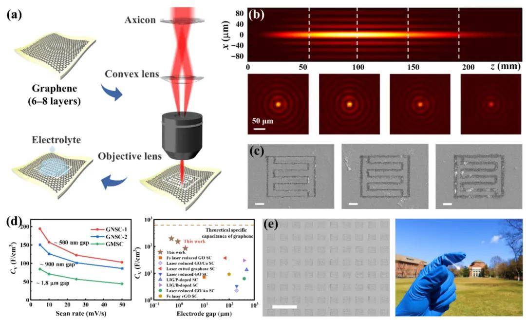 圖11超快激光貝塞爾光束加工制備納米間隙石墨烯超級(jí)電容器。