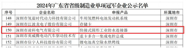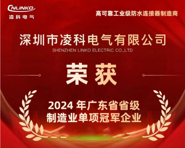近日,廣東省工業(yè)和信息化廳公布了《2024年廣東省省級制造業(yè)單項冠軍企業(yè)名單》,在357家榮獲此榮譽的企業(yè)中,深圳市凌科電氣有限公司因其出色的“快接式圓形工業(yè)防水連接器”而獲得“廣東省省級制造業(yè)單項冠軍企業(yè)”稱號。
