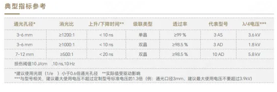 表2 BBO普克爾盒的典型參考指標(biāo)
