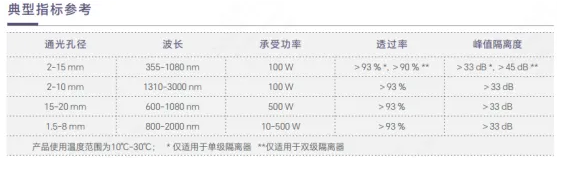我們采用高品質(zhì)的磁光晶體,具有高維爾德常數(shù)、低吸收、高消光比、低損耗等特點(diǎn),產(chǎn)品性能卓越、可靠,M2劣化小,最高峰值隔離度高達(dá)45 dB,可接受客戶定制。產(chǎn)品的最大工作平均功率可達(dá)500 W,波長范圍355 nm-4500 nm。