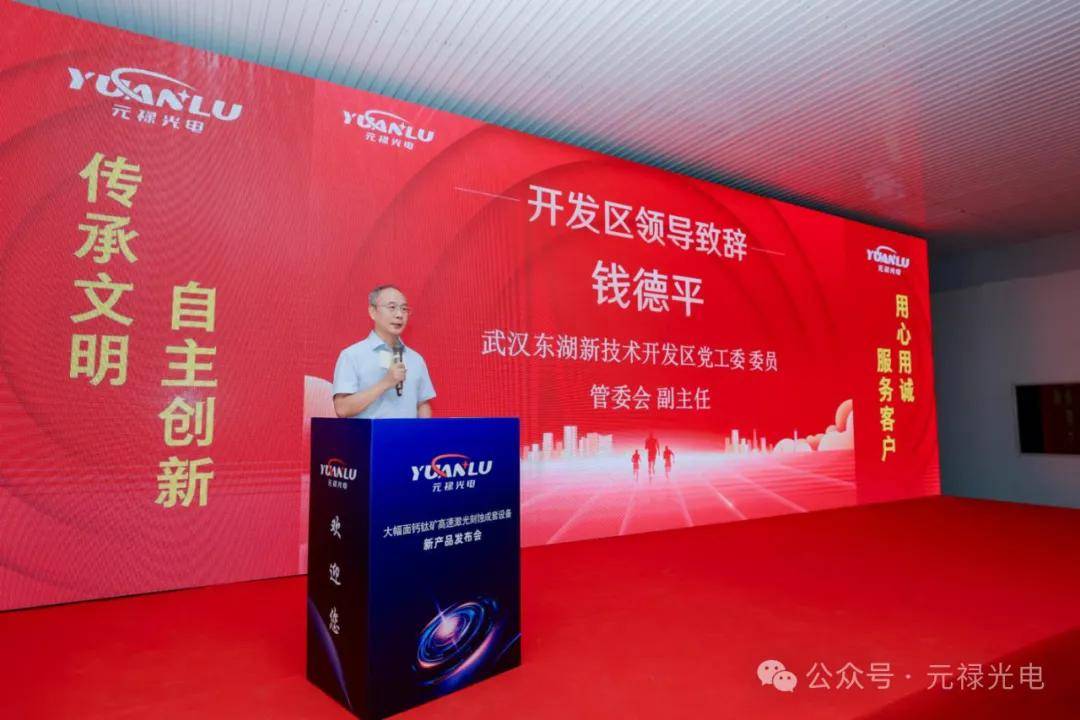 最后,東湖高新區(qū)管理委員會副主任錢德平先生在百忙之中蒞臨現(xiàn)場,分享了他的真知灼見。錢主任一直以來都密切關(guān)注著光谷的每一步成長,對激光產(chǎn)業(yè)的發(fā)展有著深刻的洞察和獨到的見解。會上,他分享了他對元祿光電新品發(fā)布的看法,以及對光谷激光產(chǎn)業(yè)未來發(fā)展的展望。