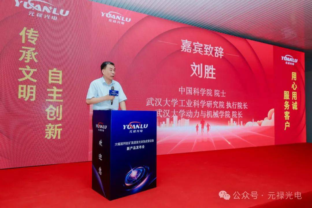 上午9:30,新品發(fā)布會正式開幕,主持人介紹了現(xiàn)場出席的嘉賓,其中,中國科學(xué)院院士、武漢大學(xué)工業(yè)科學(xué)研究院執(zhí)行院長、動力與機械學(xué)院院長劉勝教授;中國光學(xué)學(xué)會激光加工專業(yè)委員會名譽主任王又良研究員;武漢市經(jīng)信局材料處彭曉濤處長;武漢東湖新技術(shù)開發(fā)區(qū)上市公司協(xié)會涂堩中秘書長先后致辭,對“1200mm×2400mm鈣鈦礦高速激光刻蝕成套設(shè)備”新產(chǎn)品發(fā)布會的舉行表示熱烈祝賀!