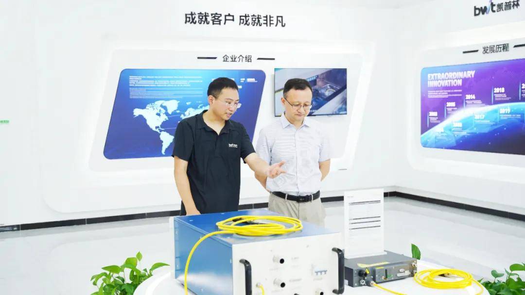 凱普林董事長陳曉華向白本鋒書記介紹公司激光器產(chǎn)品