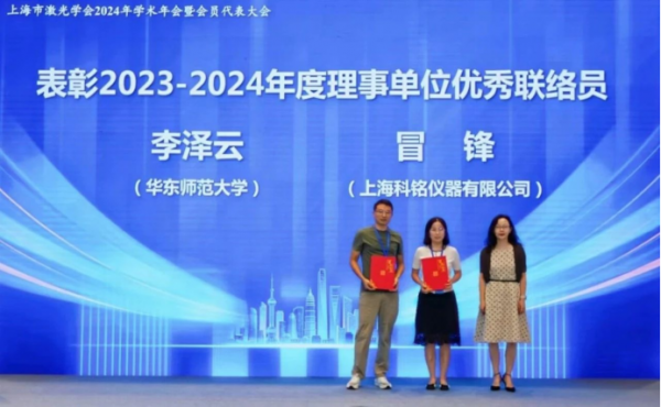 隨后,莊松林院士為2023-2024年度優(yōu)秀專委會激光工程與技術(shù)專委會和激光婦科專委會頒獎(jiǎng),徐信業(yè)主任和徐靈主任分別代表優(yōu)秀專委會領(lǐng)獎(jiǎng)。上海市科協(xié)陳馨副主席為優(yōu)秀理事單位聯(lián)絡(luò)員華東師范大學(xué)李澤云、上海科銘儀器有限公司冒鋒頒獎(jiǎng)。
