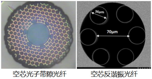 典型的空芯光子帶隙光纖和空芯反諧振光纖橫截面圖
