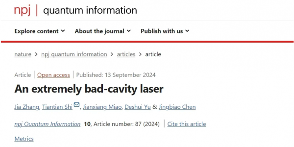 2024年9月13日,電子學(xué)院陳景標(biāo)教授團隊在新型激光領(lǐng)域研究方面取得突破性進展,成功利用精細度達最低極限值2的光學(xué)諧振腔實現(xiàn)了線寬在kHz量級的極壞腔主動光鐘激光,該結(jié)果刷新了國際同行對光學(xué)諧振腔應(yīng)用的認(rèn)知,為實現(xiàn)窄線寬激光提供了反直觀的技術(shù)途徑。相關(guān)研究成果以“An extremely bad-cavity laser”為題,發(fā)表于自然出版社旗下的國際學(xué)術(shù)期刊《npj quantum information》。