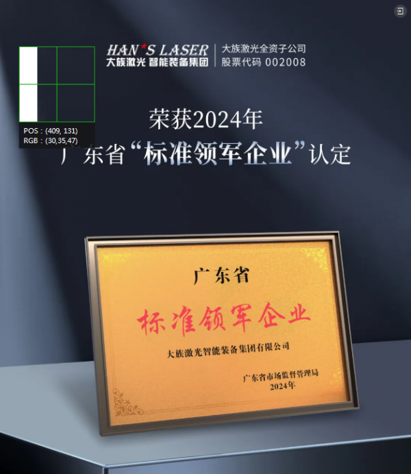 大族激光智能裝備集團獲評“廣東省標準領(lǐng)軍企業(yè)”榮譽稱號