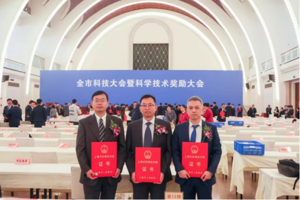 2023年度上海市科學(xué)技術(shù)獎(jiǎng)項(xiàng)一等獎(jiǎng)部分項(xiàng)目第一完成人合影,左起:張桂戌、武海斌、蒲戈光