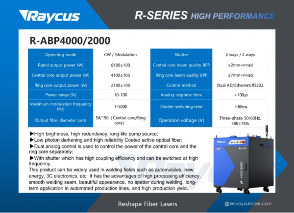 銳科旗幟高端系列產(chǎn)品主打高端領(lǐng)域,精準(zhǔn)把握汽車制造、新能源、光伏太陽能、3D 打印、航空航天等高端應(yīng)用市場,進行了9大升級突破,快速切入進口激光器壟斷的高端制造業(yè)。本次展會旗幟系列產(chǎn)品包括應(yīng)用于高質(zhì)量3D打印的C1000S AM激光器,旗幟模環(huán)形光斑4000/2000激光器——應(yīng)用于動力電池、新能源汽車、3C電子等領(lǐng)域焊接,旗幟系列P500MX激光器——應(yīng)用于應(yīng)用于新能源極柱清洗、極片清洗、極耳切割、扁銅線清洗、薄銅片切割、車架號深雕等。近年來,手持焊激光器成為激光應(yīng)用領(lǐng)域的一匹黑馬,市場規(guī)模持續(xù)增長,競爭尤為激烈,但存在加工效率低、不便攜、界面難操作和價高質(zhì)劣等方面的需求痛點。銳科激光針對這些痛點專為市場打造了高品質(zhì)的焊將系列手持焊專用激光器。此次展會銳科帶來的手持焊系列產(chǎn)品包括600W、900W、1200W、1500W焊將系列風(fēng)冷手持焊專用激光器和1200W、1500W、2000W焊將系列水冷手持焊專用激光器。它們具備5大產(chǎn)品優(yōu)勢:(1)高效率:足功率,高光束質(zhì)量,加工效率提升;(2)輕量化:體積小巧,結(jié)構(gòu)緊湊,重量輕;(3)智能化:激光智聯(lián),一部手機即可高效完成全部操作;(4)耐久性:水冷機雙溫雙控,支持 24 小時全天候工作;(5)高質(zhì)量:長期加工一致性好,焊縫質(zhì)量美觀。可以廣泛應(yīng)用于汽車、家裝、廣告、五金、門窗和櫥柜等行業(yè)。