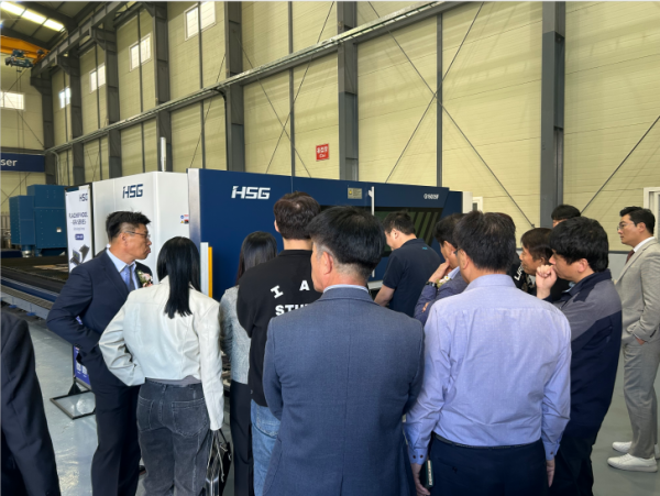 開業(yè)儀式上,韓國(guó)子公司負(fù)責(zé)人Mars進(jìn)行公司介紹:“HSG LASER KOREA于2024年成立,坐落于韓國(guó)第二大城市釜山,總投資額超過20億韓幣,設(shè)有展示中心,零部件倉(cāng)庫(kù)和培訓(xùn)基地,本地服務(wù)和銷售團(tuán)隊(duì)人員近20人,旨在為韓國(guó)本土客戶提供優(yōu)質(zhì)的技術(shù)支持及售后服務(wù)。”