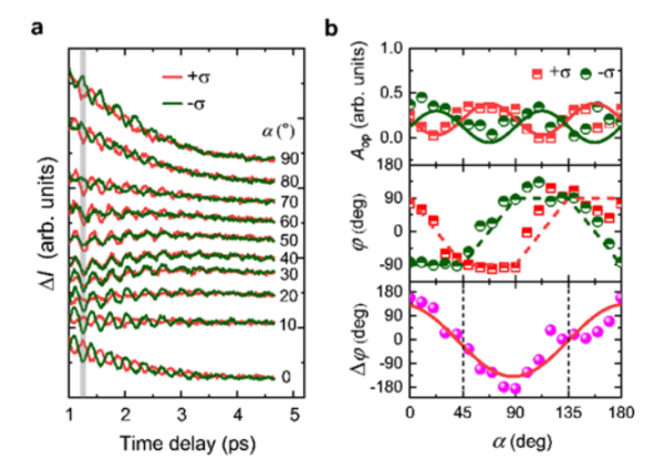 圖1. 全光產(chǎn)生、探測(cè)相干聲子和光螺旋度依賴的相干光學(xué)聲子。
