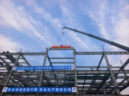 中建一局華北公司高功率激光器智慧工廠首棟鋼結(jié)構(gòu)順利封頂