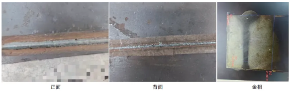 紫銅6mm對接焊焊縫正面、背面形貌及截面金相