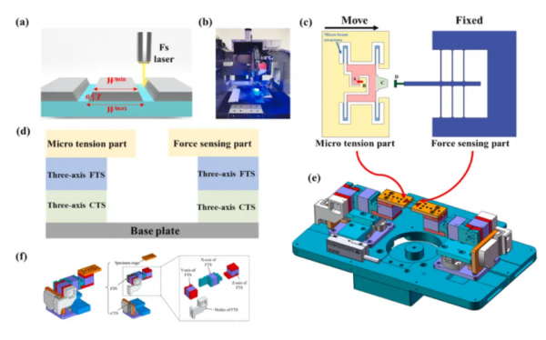 本次項(xiàng)目中,清華大學(xué)的研究團(tuán)隊(duì)使用了單色科技的飛秒激光精密切割設(shè)備,該設(shè)備可以實(shí)現(xiàn)微納結(jié)構(gòu)的高精度加工,為微機(jī)械原位拉伸裝置的制造提供了高效、精準(zhǔn)的解決方案,助力納米材料力學(xué)性能的精準(zhǔn)測(cè)量。