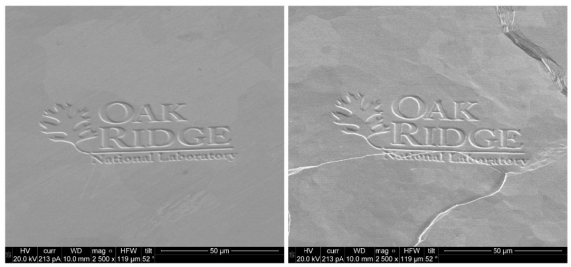 2023年5月,ORNL制造的PBF-EB樣品在圣地亞哥的DIII-D國家聚變設施中進行測試,該樣品在高熱和粒子流的混合環(huán)境中接受考驗,并與傳統(tǒng)制造的高純度再結晶鎢進行對比。結果表明,PBF-EB鎢在熱機械響應和表面損傷方面表現(xiàn)相當或更優(yōu),僅出現(xiàn)了一些表面粗糙、晶粒生長和裂紋萌生現(xiàn)象,但未出現(xiàn)剝落或材料彈出等失效模式。