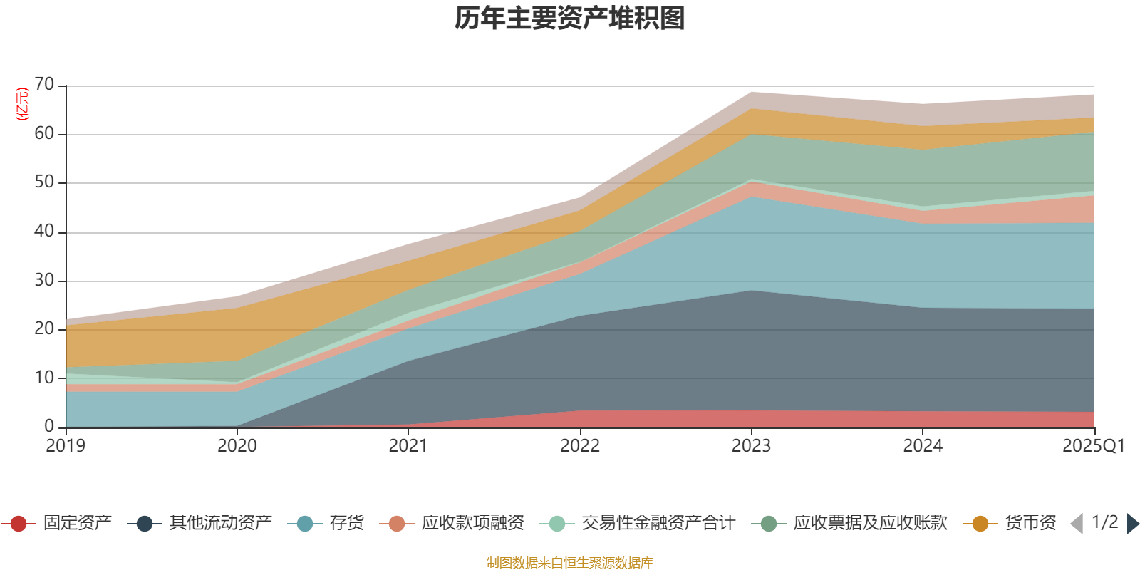 資產(chǎn)重大變化方面,截至2025年一季度末,公司應(yīng)收款項(xiàng)融資較上年末增加115.34%,占公司總資產(chǎn)比重上升4.3個(gè)百分點(diǎn);貨幣資金較上年末減少39.88%,占公司總資產(chǎn)比重下降3.05個(gè)百分點(diǎn);其他流動資產(chǎn)較上年末減少0.22%,占公司總資產(chǎn)比重下降0.98個(gè)百分點(diǎn);固定資產(chǎn)較上年末減少3.9%,占公司總資產(chǎn)比重下降0.33個(gè)百分點(diǎn)。