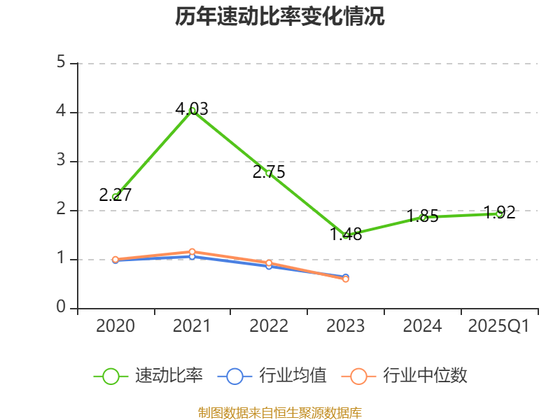 2025年第一季度,公司流動比率為2.69,速動比率為1.92。