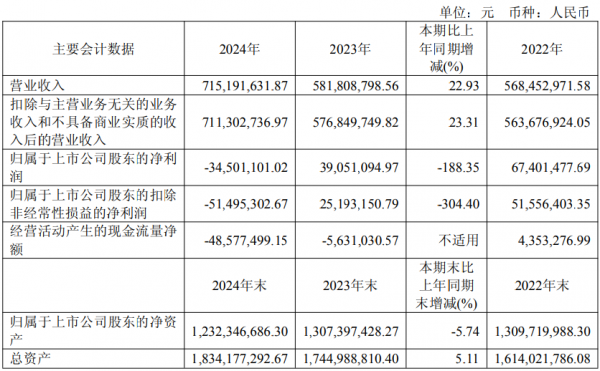 4月29日,德龍激光發(fā)布2024年度年報(bào),年報(bào)數(shù)據(jù)顯示,公司2024年度營業(yè)收入達(dá)7.15億元,較上年同期增長22.93%,然而,歸屬于上市公司股東的凈利潤卻為-3450萬元,同比下滑188.35%,上市后首年出現(xiàn)虧損。