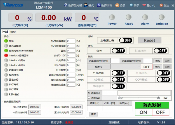 • 配置上位機軟件,出光功率/溫度/濕度等狀態(tài)隨時監(jiān)控,且具備高反報警提示功能。