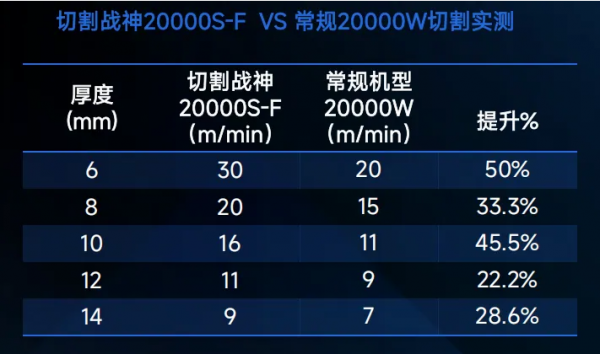• 20000S-F機型:在6-14mm中薄板切割中,速度較常規(guī)20000W機型提升22.2%-50%,6mm板材效率飆升50%。