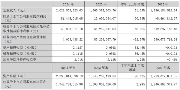 鉑力特2024年度實現(xiàn)營業(yè)總收入13.26億元,同比增長15.02%;歸母凈利潤1.04億元,同比下降5.26%;扣非凈利潤3567.43萬元,同比下降51.98%。