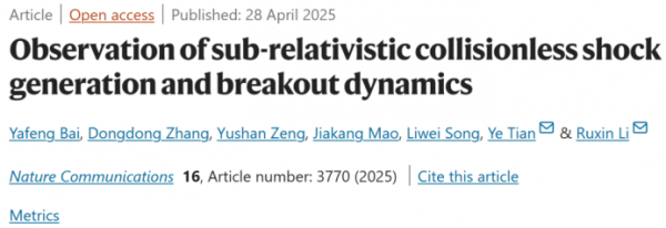 上海光機所研究團隊在超強超短激光脈沖精密調(diào)控等離子體實現(xiàn)亞相對論無碰撞激波研究方面取得重要進展