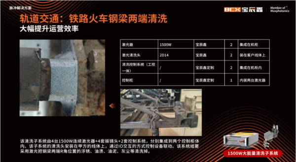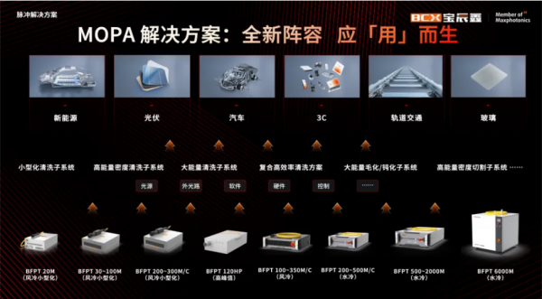 在軌道交通、光伏、輪胎模具制造等應用場景中,寶辰鑫MOPA脈沖激光方案憑借“對癥下藥”,針對客戶的細分應用場景需求,以光源+外光路+控制系統(tǒng)為一體的一站式解決方案為客戶帶來效率與質量的雙贏!