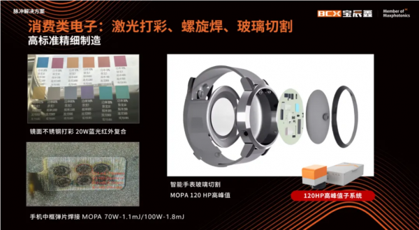 在消費電子“輕、薄、柔”的技術迭代中,MOPA脈沖激光方案的應用已成為精密制造的核心工具。寶辰鑫以高參數(shù)靈活性、智能化及多工藝整合能力、一站式解決方案能力,在手機中框、耳機殼的彩色打標、氧化層清洗,PCB/FPC 精密打標與切割,藍寶石玻璃蓋板、濾光片的鉆孔與切割中落地豐富應用,為消費電子高端制造提供有力武器。