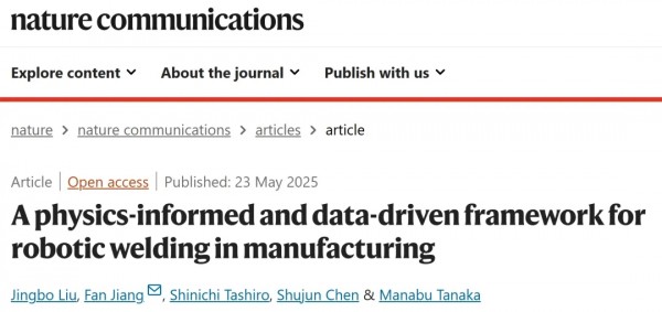 近日,北京工業(yè)大學(xué)陳樹君教授團隊的研究成果《A physics-informed and data-driven framework for robotic welding in manufacturing》在《Nature Communications》發(fā)...
