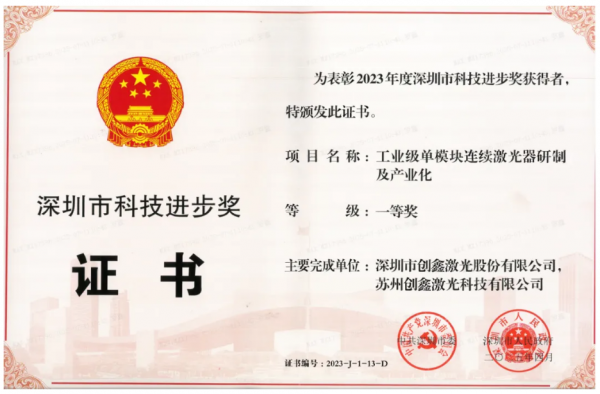 創(chuàng)鑫激光連獲深圳市科技進(jìn)步一等獎(jiǎng)、科技創(chuàng)新企業(yè)獎(jiǎng),雙獎(jiǎng)印證硬核實(shí)力