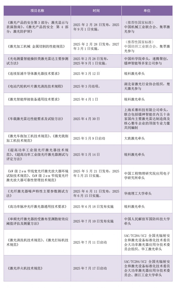 爭(zhēng)奪“定義權(quán)”,2025年激光行業(yè)標(biāo)準(zhǔn)建設(shè)火力全開