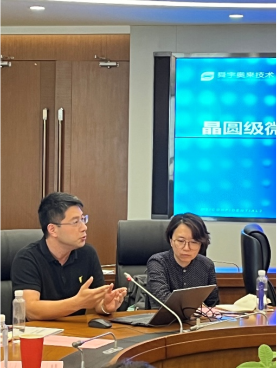 舜宇奧來技術的徐國冉廠長作了題為“晶圓級微納光學的綜合解決方案”的報告,介紹了公司的發(fā)展歷程、創(chuàng)立初衷、核心產品的競爭優(yōu)勢及其廣闊的應用前景。其中,關于AR光波導眼鏡片的介紹引起了與會代表的濃厚興趣,在互動環(huán)節(jié)參會人員就相關技術問題和應用推廣進行了深入研討。