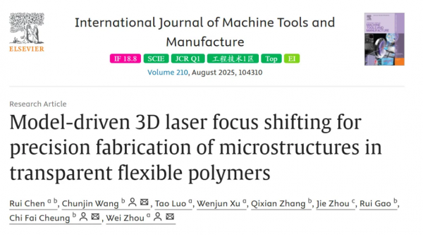 近日,廈門大學(xué)薩本棟微米納米科學(xué)技術(shù)研究院周偉教授團隊與香港理工大學(xué)超精密加工技術(shù)全國重點實驗室Chi Fai Cheung(張志輝)教授、王春錦助理教授合作,在透明聚合物材料高精度三維微結(jié)構(gòu)激光加工技術(shù)方面取得重要突破。團隊提出并實證驗證了一種“模型驅(qū)動三維動態(tài)聚焦激光加工”(3D-DFL)新工藝,通過實時調(diào)控激光焦點,實現(xiàn)復(fù)雜微結(jié)構(gòu)的高保真、高一致性制造。研究成果以題為Model-driven 3D laser focus shifting for precision fabrication of microstructures in transparent flexible polymers”發(fā)表在機械制造領(lǐng)域國際頂級期刊International Journal of Machine Tools and Manufacture