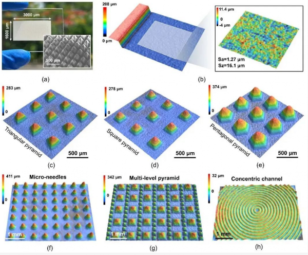 透明柔性聚合物因其優(yōu)異的光學(xué)透明性、柔韌性和生物相容性,廣泛應(yīng)用于微流控芯片、柔性電子、功能表面和生物醫(yī)學(xué)等前沿領(lǐng)域。三維微結(jié)構(gòu)的引入可以顯著提升其機械性能、光學(xué)特性和流體動力學(xué)性能,從而賦予材料一系列新功能。但由于其柔軟、易變形、導(dǎo)熱性差等特性,導(dǎo)致加工過程中常發(fā)生彈性回彈、熱積聚、工具粘附和結(jié)構(gòu)坍塌,嚴(yán)重影響成型質(zhì)量和重復(fù)性。由此可見,在聚合物材料表面構(gòu)建高精度三維微結(jié)構(gòu)始終面臨巨大挑戰(zhàn)。