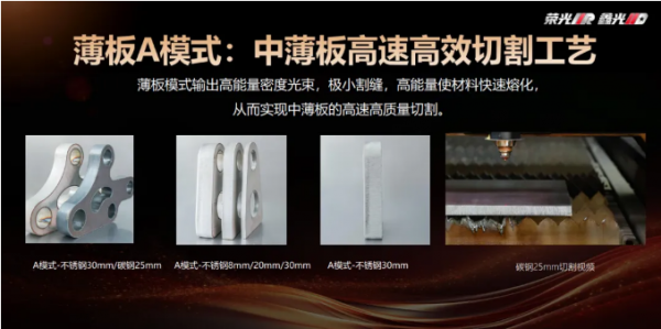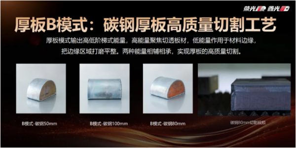 兩種模式相輔相承,最終實(shí)現(xiàn)中薄板高速高效切割、碳鋼厚板高質(zhì)量切割,為制造業(yè)提供專業(yè)高效的激光解決方案。