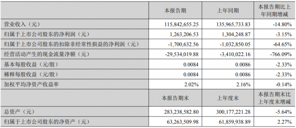 8月27日晚間,金運(yùn)激光(300220.SZ)發(fā)布公告,2025年半年度營業(yè)收入1.16億元,同比下降14.80%;歸屬于上市公司股東的凈利潤為126.32萬元,同比下降3.15%。