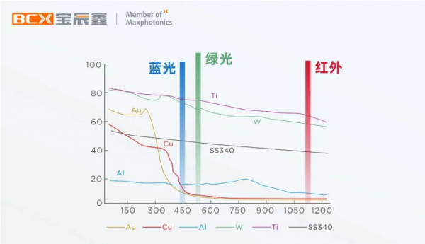 除了藍(lán)光激光外,綠光激光方案同樣對(duì)銅等高反射材料有更高的吸收率,成為加工此類材料的優(yōu)選方案。