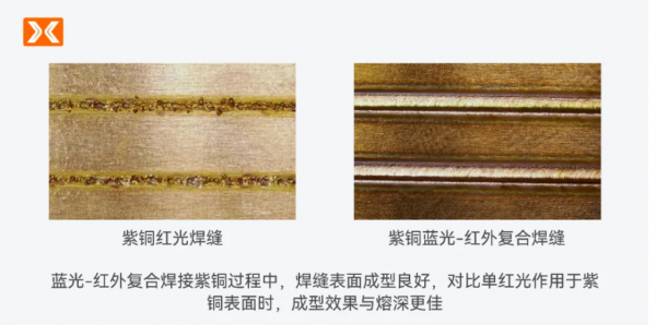 △單紅光與藍(lán)光-紅外復(fù)合對(duì)紫銅焊接成型的效果對(duì)比