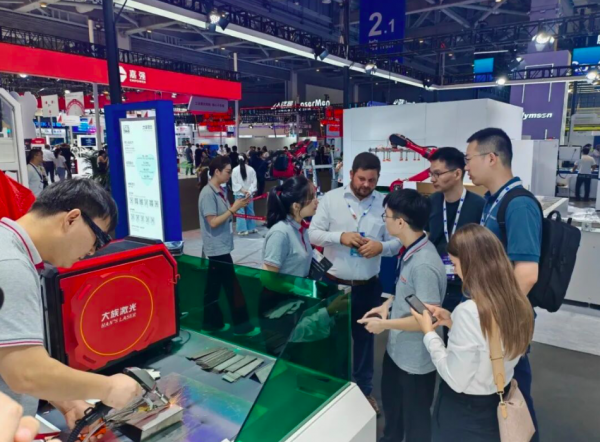 察勢者智,馭勢者贏。展會首日,大族激光“藍晶”系列展區(qū)人流如織,現(xiàn)場試焊體驗排起長隊。眾多裝備制造、船舶工程、新能源汽車領(lǐng)域的客戶駐足交流,對產(chǎn)品的厚板焊接能力與多功能集成表示高度認(rèn)可。技術(shù)團隊與現(xiàn)場用戶就實際應(yīng)用場景中的工藝難點展開了深度探討。
