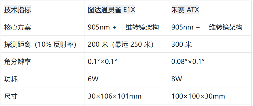 值得注意的是,靈雀E1X作為圖達通首款905nm量產機型,其6W低功耗、3600元成本控制等優(yōu)勢,與其此前1550nm產品相比實現(xiàn)顯著突破,而這些技術特性恰與禾賽AT系列的核心競爭力高度吻合。